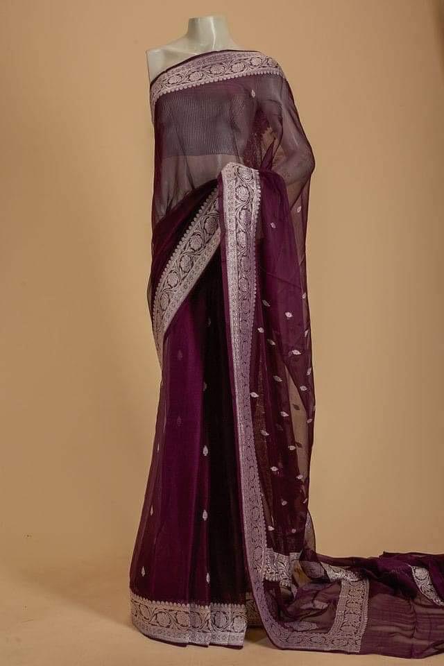 Banarasee Sheer Embroidered Saree