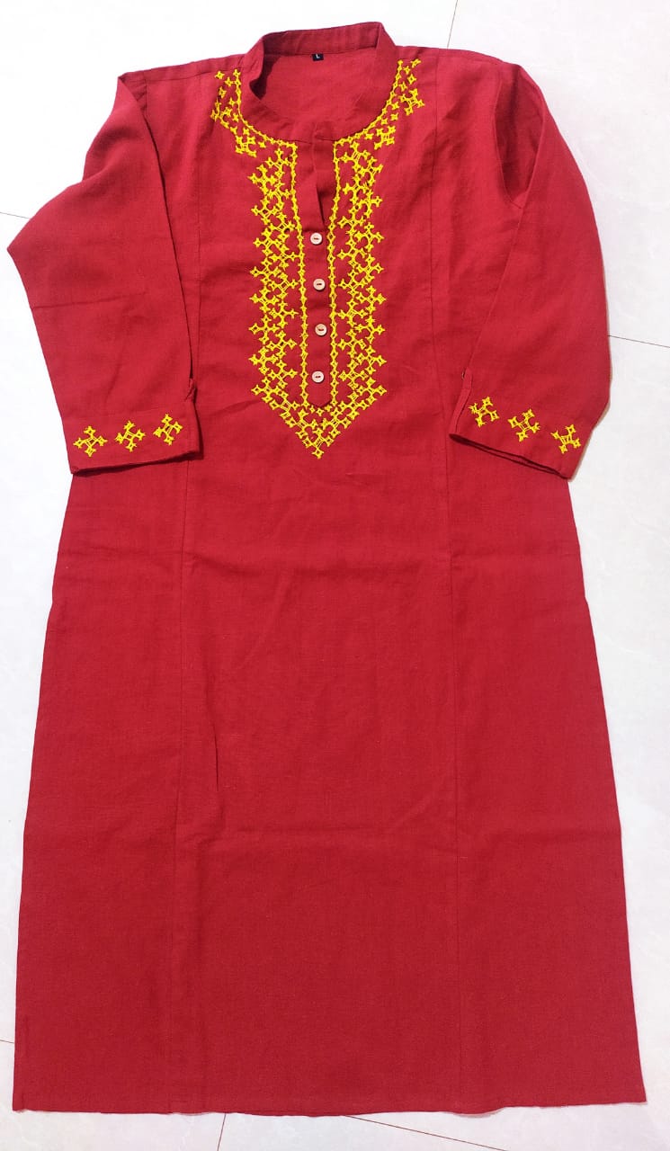 Bold and striking, this crimson red kurta with elegant embroidery brings festive energy and timeless elegance to your wardrobe.