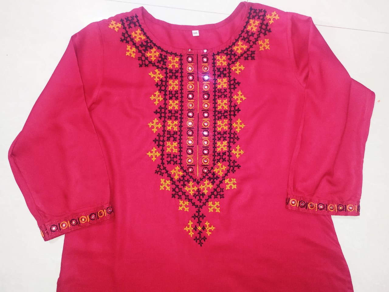 This garnet red kurta stands out with intricate threadwork and flattering design. A bold yet graceful option for festive and cultural wear.