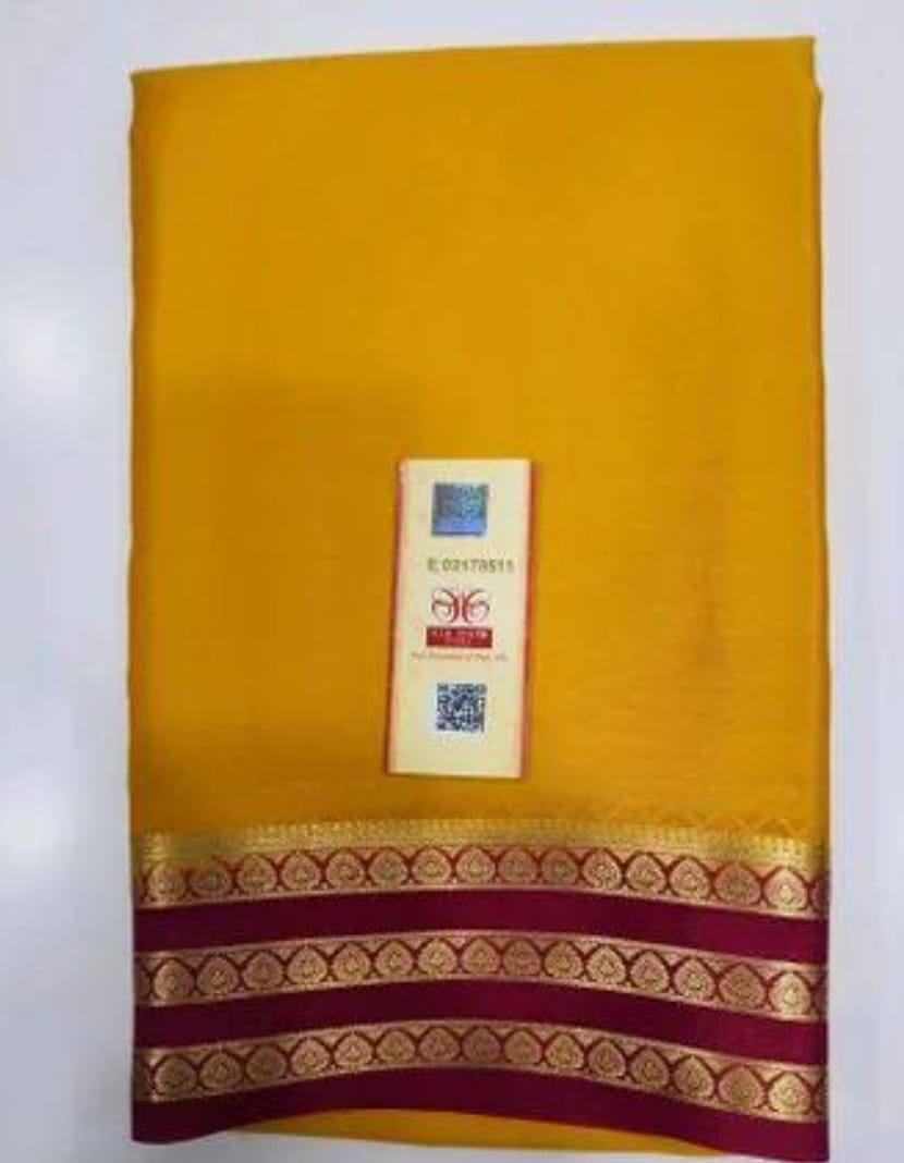 Mustard Yellow Saree with Maroon & Golden Zari Border