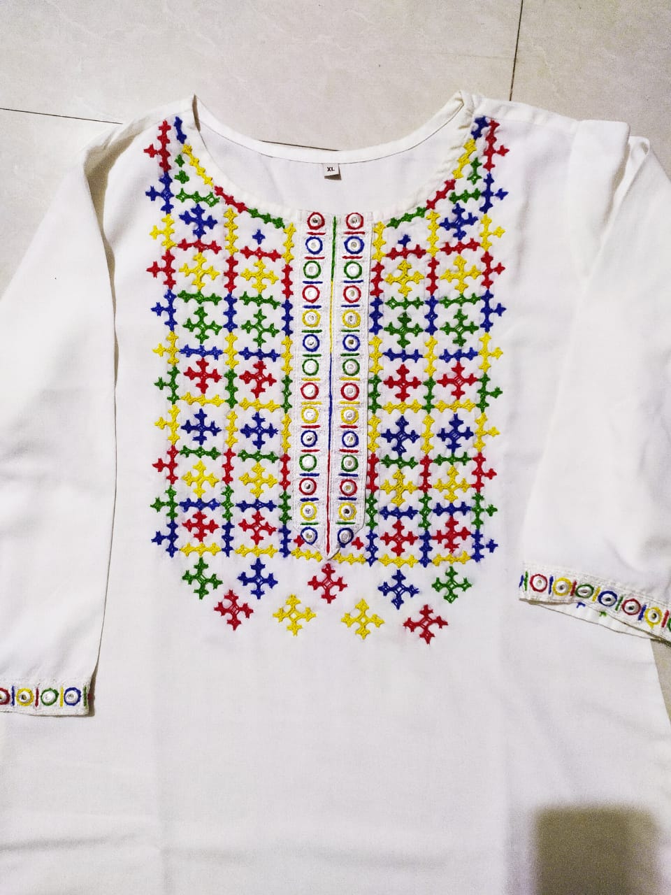Subhra Collection – Pearl White Embroidered Kurta for Women