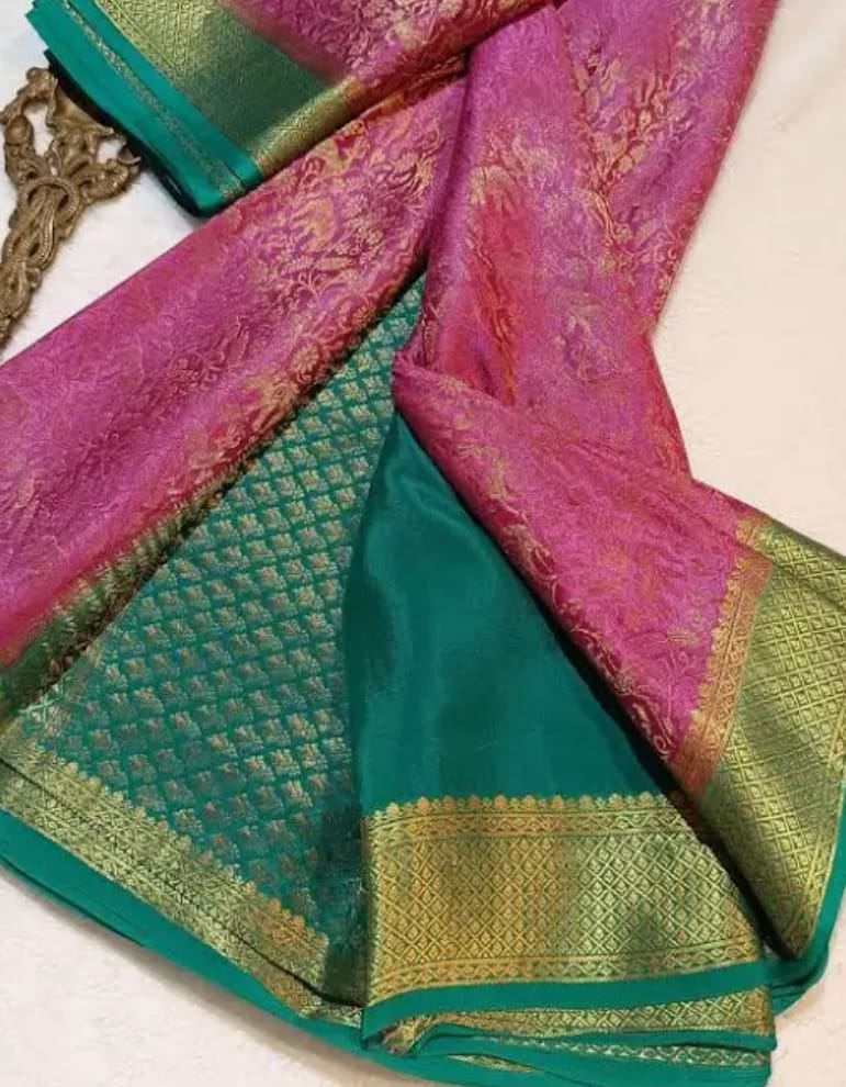 Pink & Green Banarasi Saree with Golden Zari Weaving