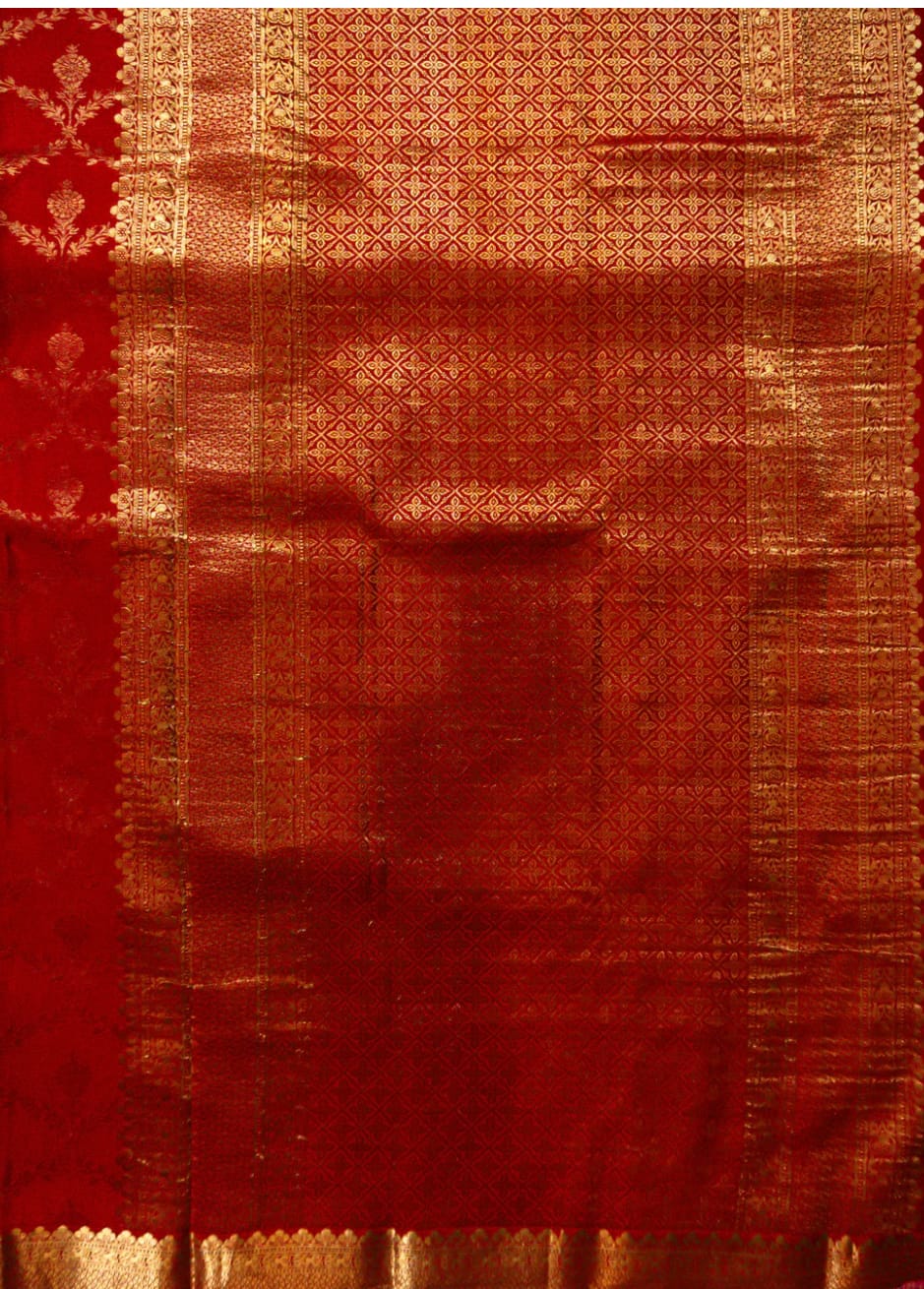 Red Banarasi Saree with Heavy Golden Zari Weaving