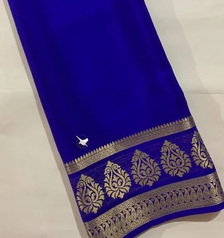 Royal Blue Saree with Golden Zari Paisley Border
