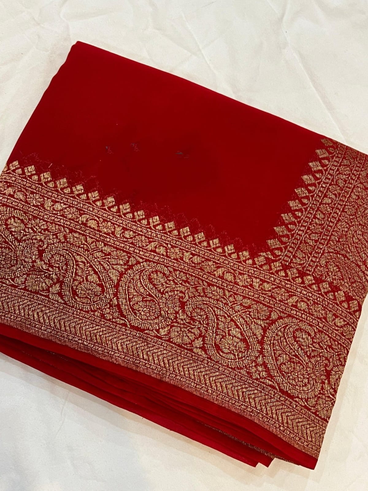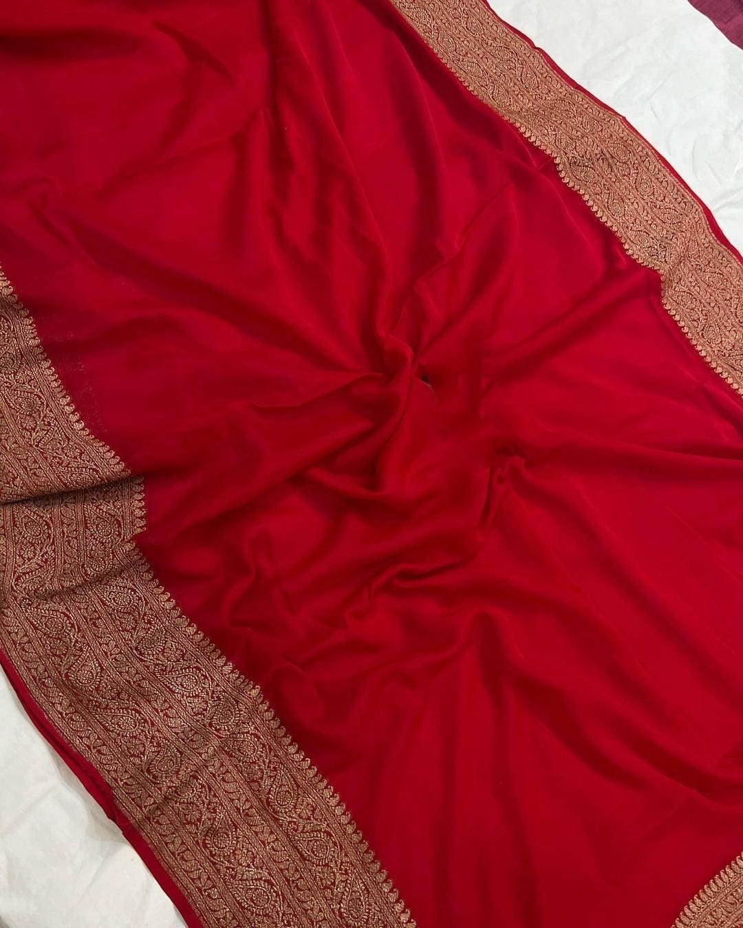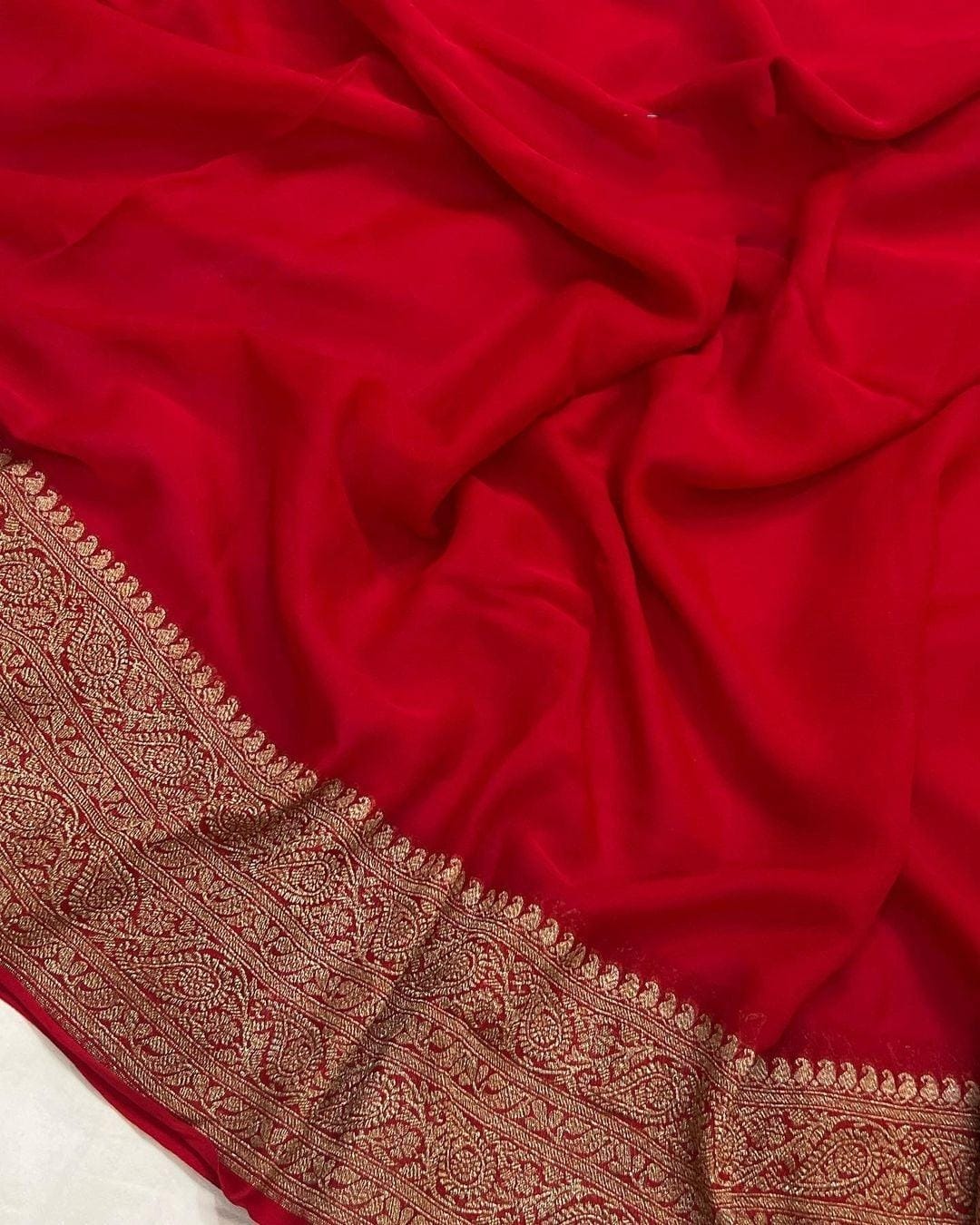 Royal Red Banarasi Khadi Georgette Saree with Antique Zari Border