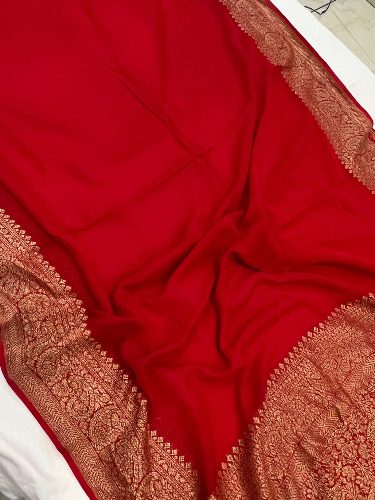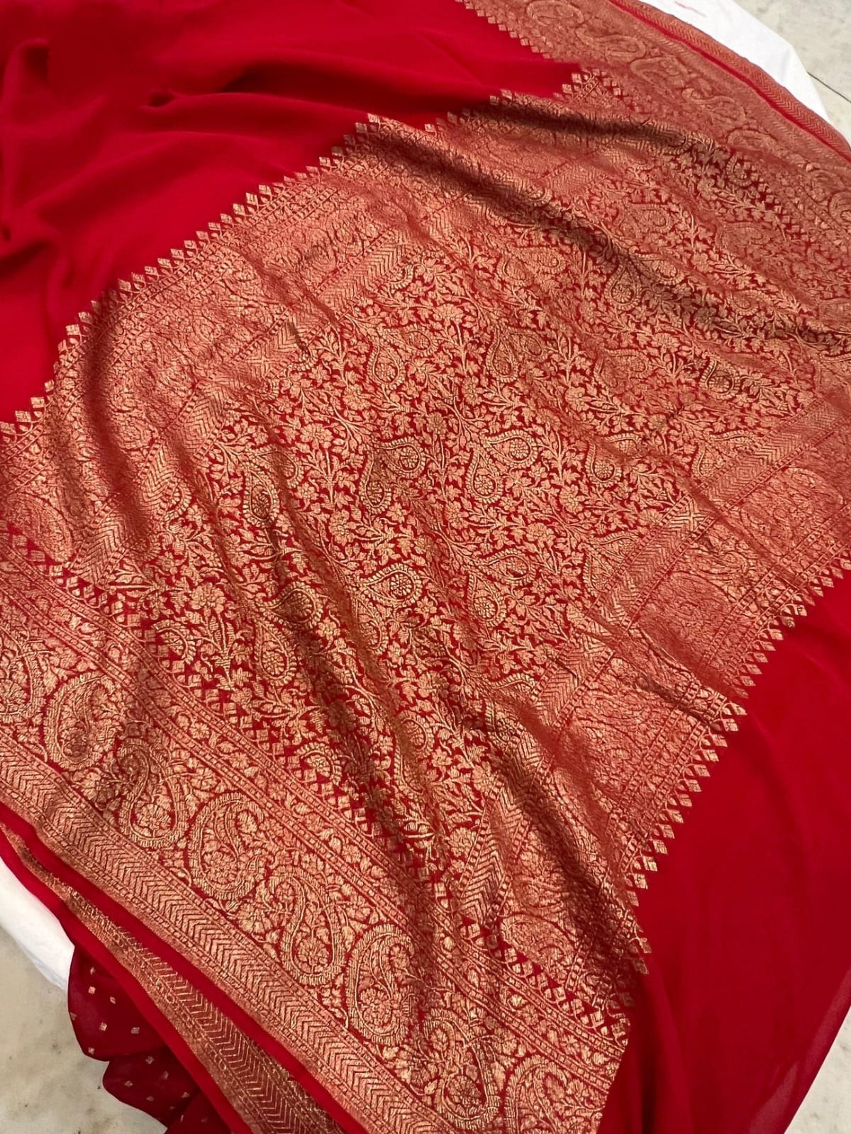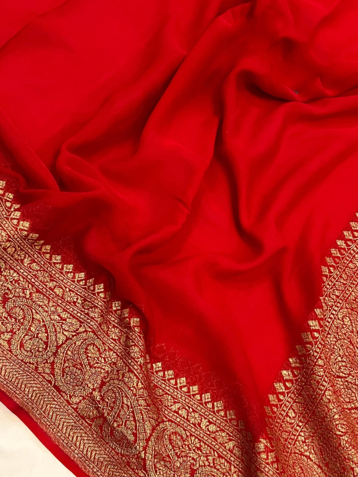 Royal Red Banarasi Khadi Georgette Saree with Antique Zari Border