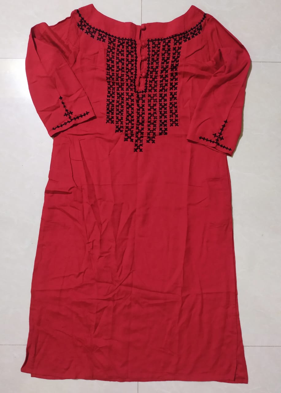 Subhra Collection – Ruby Red Embroidered Kurta for Women