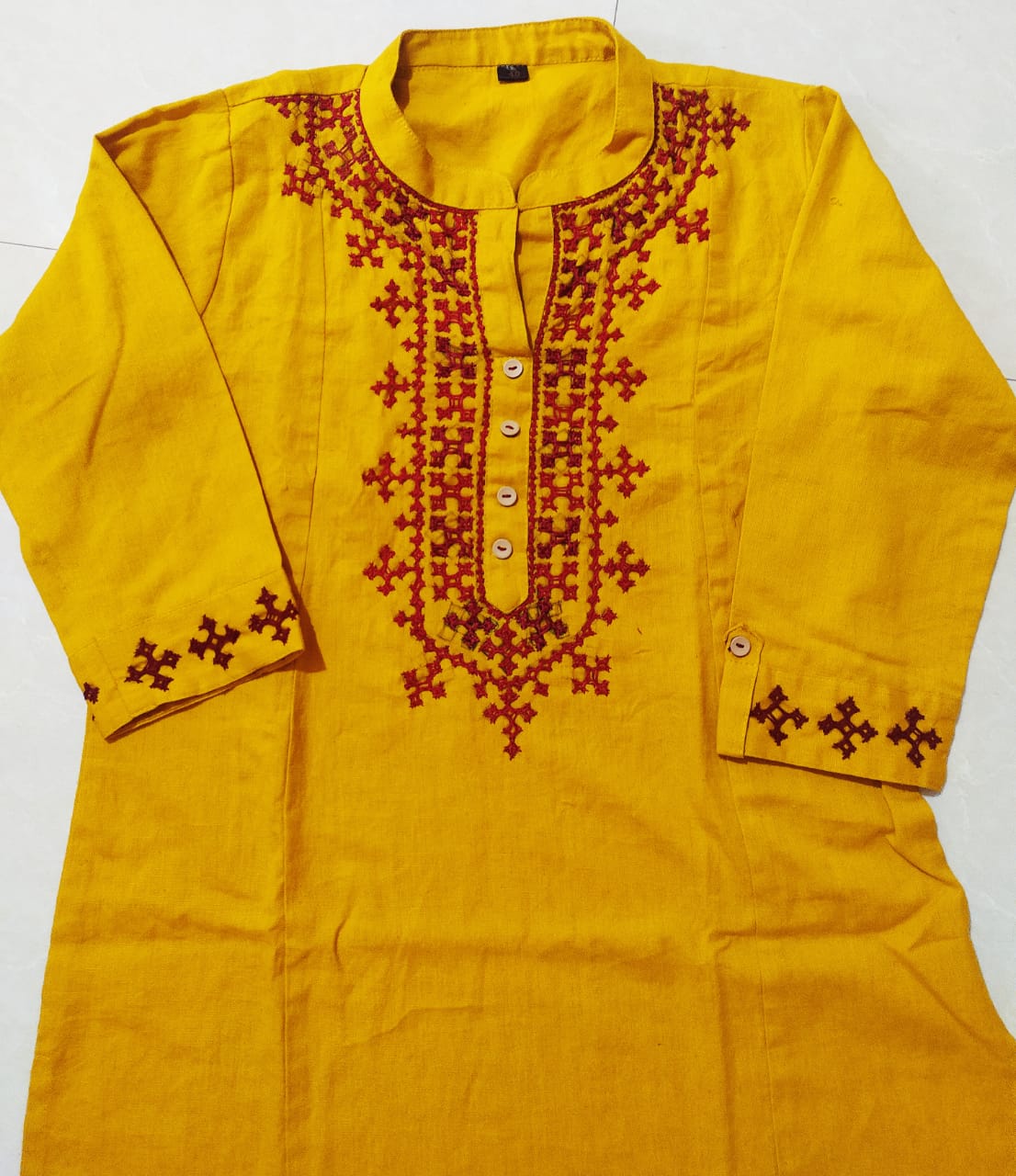 Bright and cheerful, this yellow kurta is enriched with intricate embroidery. Perfect for celebrations, it adds vibrance and tradition to your ethnic wear.